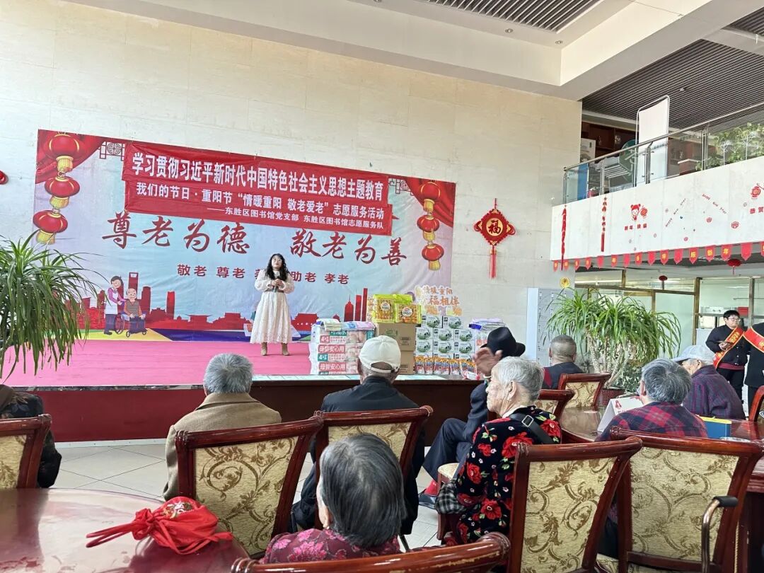 为深入学习贯彻习近平新时代中国特色社会主义思想,将主题教育走深走实,进一步弘扬中华民族尊老爱老的传统美德,营造重阳节的节日氛围,进一步活跃老年人的身心,10月18日,东胜区图书馆党支部、东胜区图书馆新时代文明实践志愿服务队走进鄂尔多斯中华情医养院,开展“情暖重阳 敬老爱老”志愿服务活动。