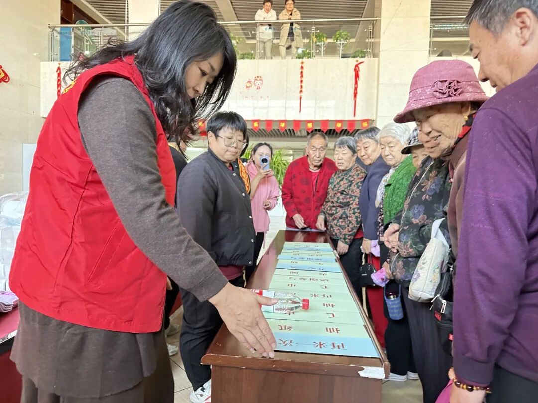 活动开始,先进行了热场互动,手指游戏,接着由图书馆志愿者们带来歌曲《甜蜜蜜》和三句半《重阳节快乐》,同时,还把图书馆的资源报纸期刊带到医养院方便老人们阅读。此外,精心策划了书法展示和“传承非遗 香囊寄福”茱萸香囊手工制作活动,让他们充分感受中国的书法艺术和民间手工艺品的独特艺术魅力。最后活动以游戏福气圈圈乐和爱心滚滚来在欢乐中结束。